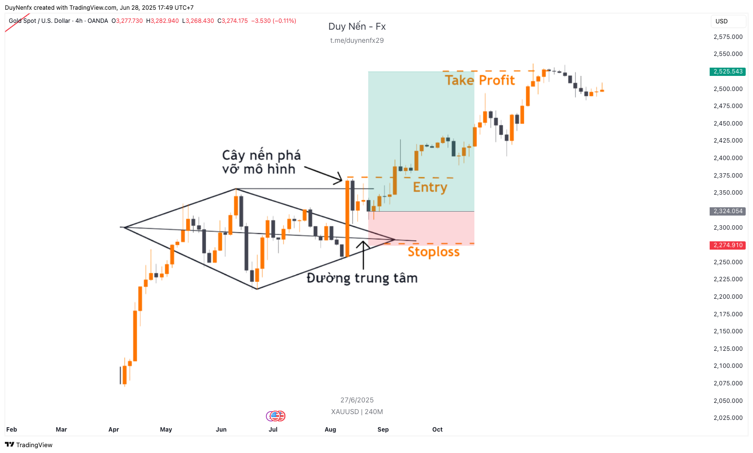 Đừng cố vẽ kim cương nếu cấu trúc chưa đủ rõ – chỉ vào lệnh khi breakout thật sự xảy ra.