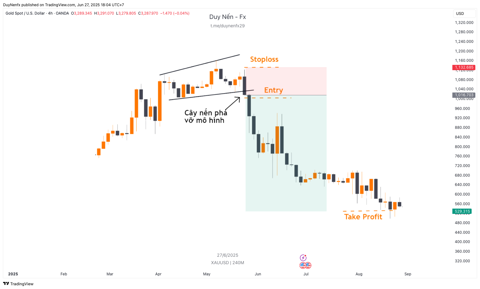 Stoploss: Dưới cây nến phá vỡ