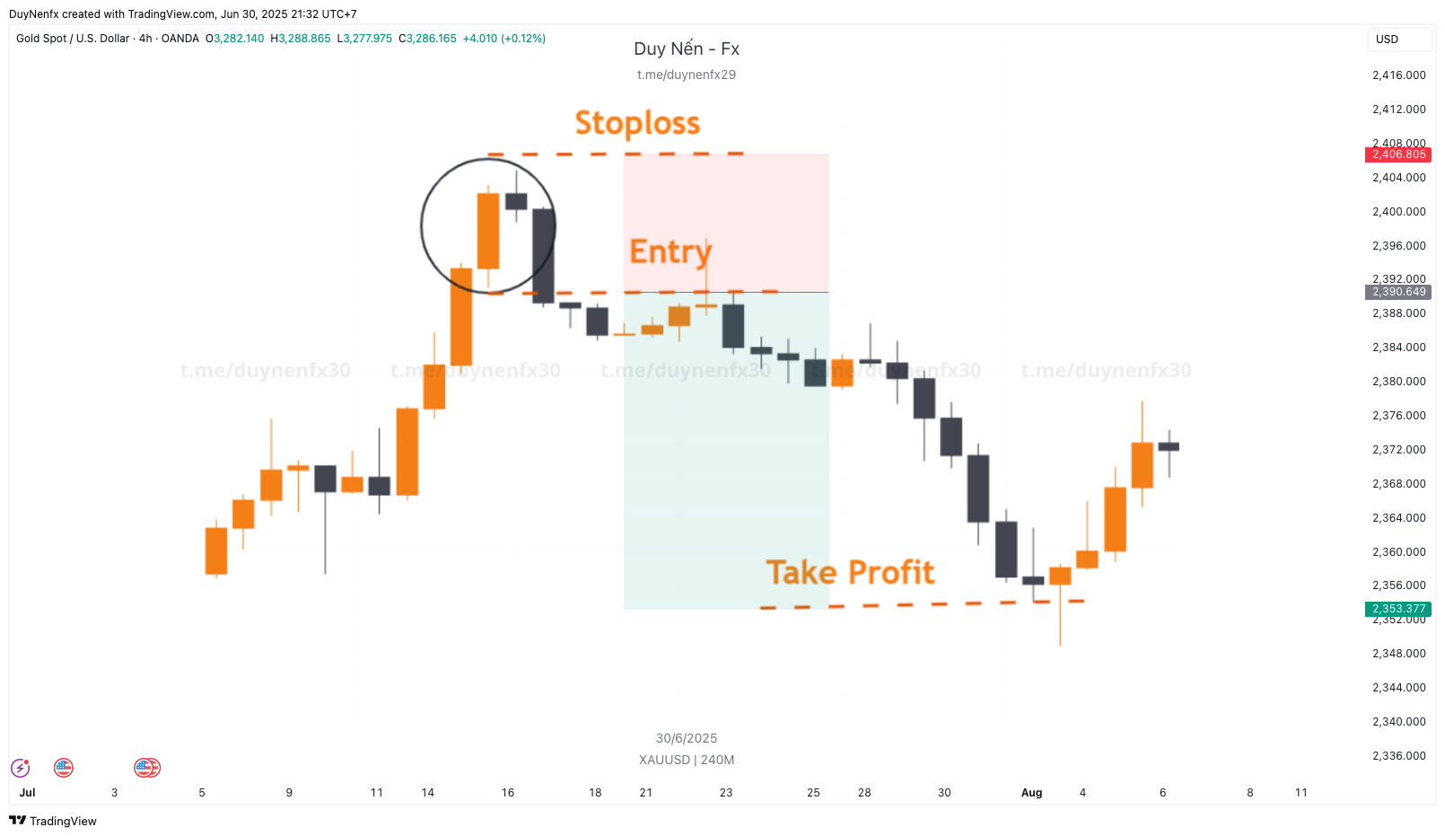 Nếu là Bearish Harami → vào Sell khi giá phá vỡ đáy nến con