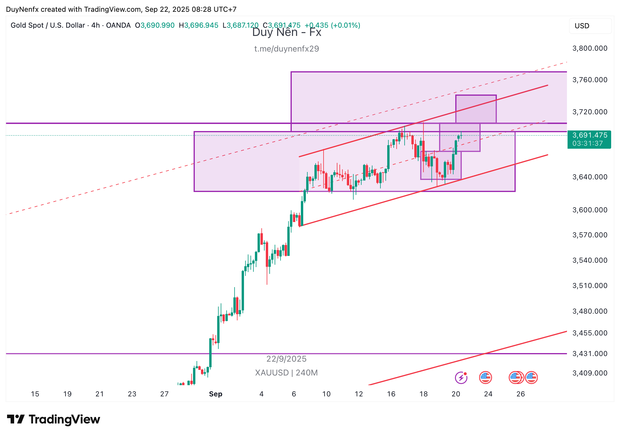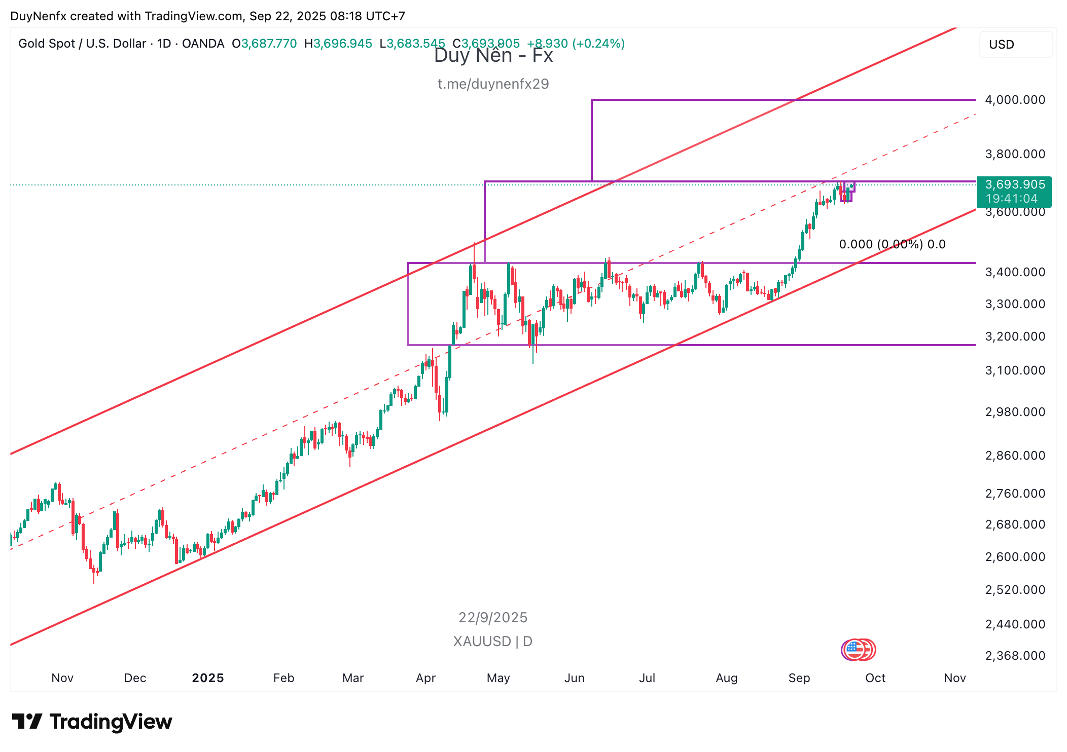 Hiện tại trên Khung D Vàng vẫn trong trend tăng mạnh. Hiện tại đang ở đỉnh hộp 2 của khung D.